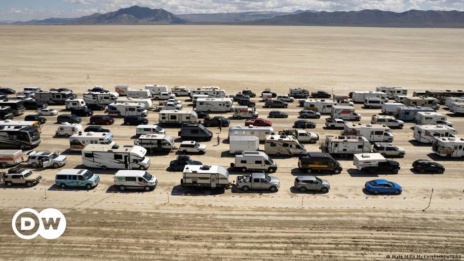 Hundreds of vehicles streamed out of the exit gates of Burning Man after authorities deemed the situation safe for people to leave. Heavy rainfall forced organizers to bring the party to a halt over the weekend.