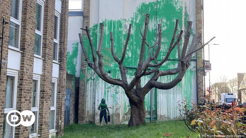 The artwork uses green paint sprayed across the side of a building to to imitate the leaves of a heavily pruned tree. Local MP Jeremy Corbyn hailed the mural, saying he saw an environmentalist message.